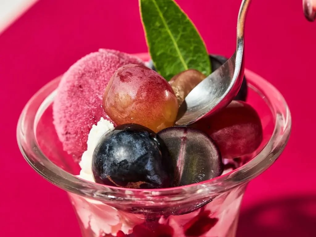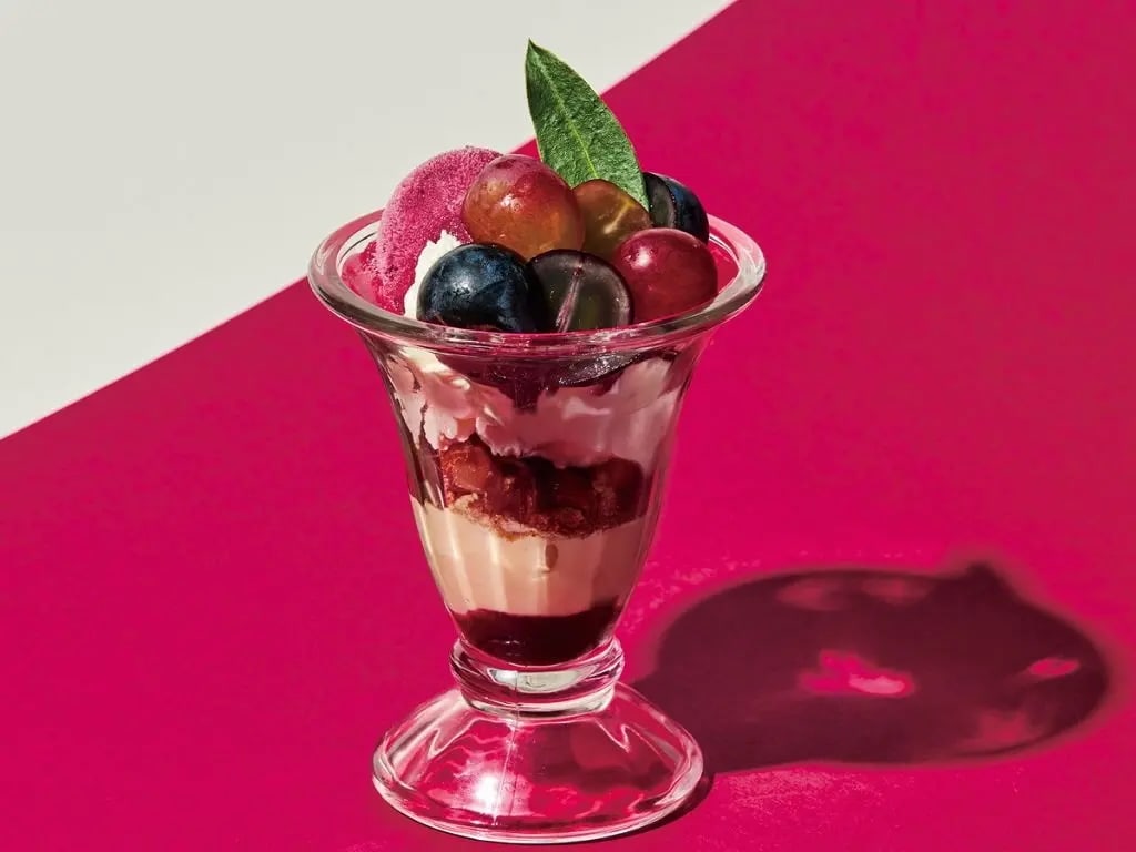 グラスの中にぎゅっと詰め込んだ、秋の葡萄の彩り。ミルクアイスと巨峰シャーベットがとろけ合い、カシスソースの酸味と紅茶ゼリーの香りが、余韻まで爽やかに包み込みます。一粒一粒に旬の美が宿る、期間限定のプレミアムパフェです。